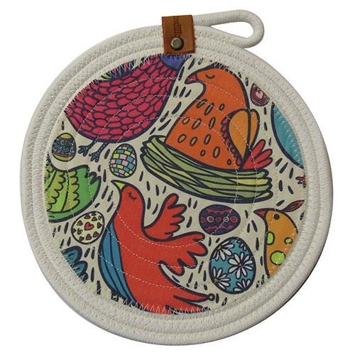 بنیس زیر قابلمه ای نخ کتان طرح پرنده
